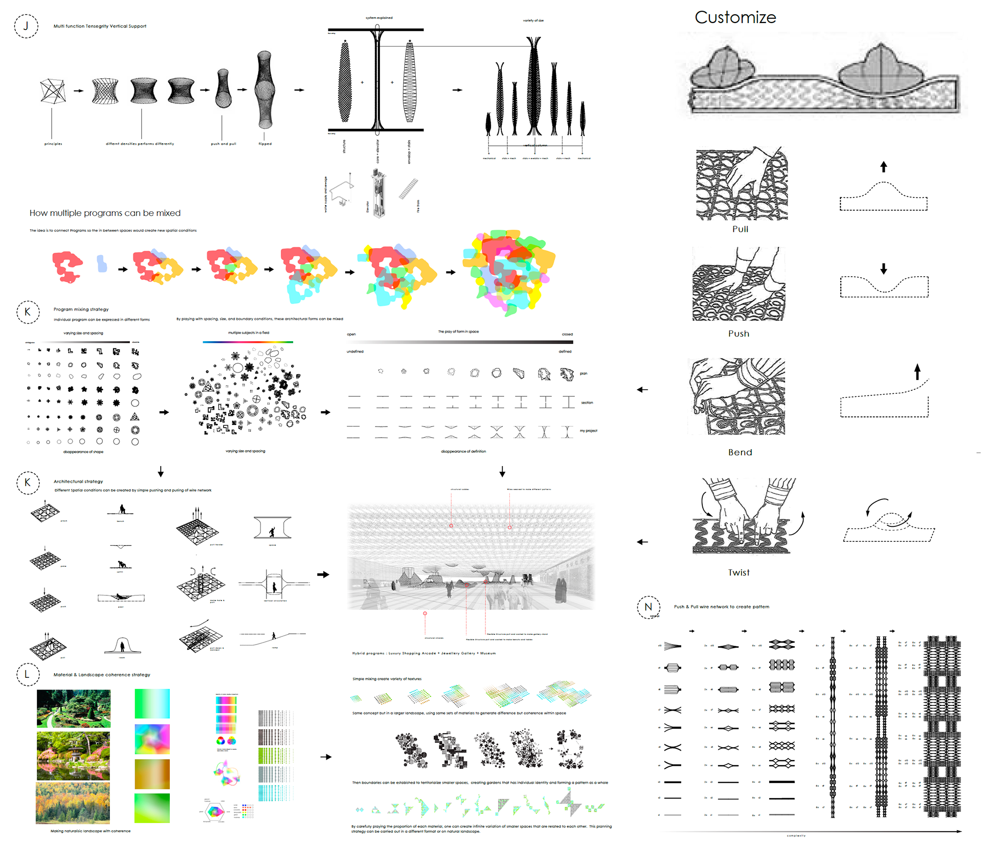 The new urban model is inspired by the fast blooming economy and culture of Dubai city. The theoretical project is a continuation of 4D island. It is about integrating multiple subjects in space creating a smooth and unique experience while maintain each subject’s supreme quality and character.